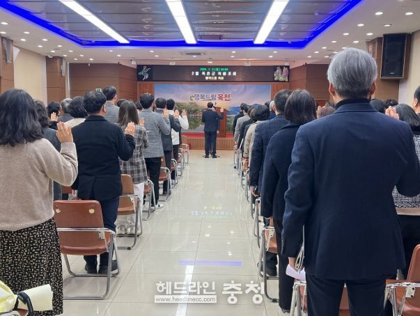 헤드라인충청 김용철 기자 | 옥천군 공무원들이 군청 대회의실에서‘친절행정 실천 다짐대회’를 개최하고 친절한 공직문화 조성에 앞장서 나갈 것을 약속했다.