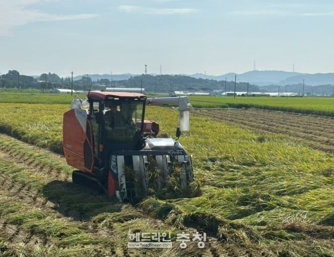 헤드라인충청 최주일 기자 | 천안지역 올해 첫 벼베기 행사가 지난 3일 동남구 성남면 석곡리 이상희(62) 씨 논에서 열렸다.