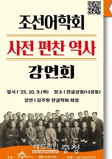 헤드라인충청 권은숙 기자 | 세종특별자치시가 한글학회와 함께 내달 9일 나성동 한글상점에서 ‘2025 세종시-한글학회 공동 주최 강연회’를 개최한다.