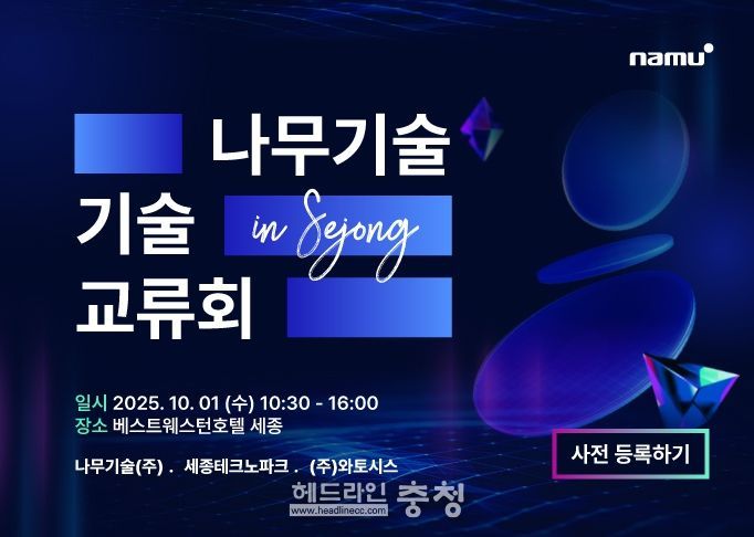 헤드라인충청 권은숙 기자 | 세종테크노파크는 2025년 세종 지역혁신클러스터육성 R·D 과제의 성과 및 기반 기술 공유와 더불어 분야별 IT 신기술 교류를 위해'2025 나무기술 기술 교류회 in Sejong'을 개최한다고 26일 밝혔다.