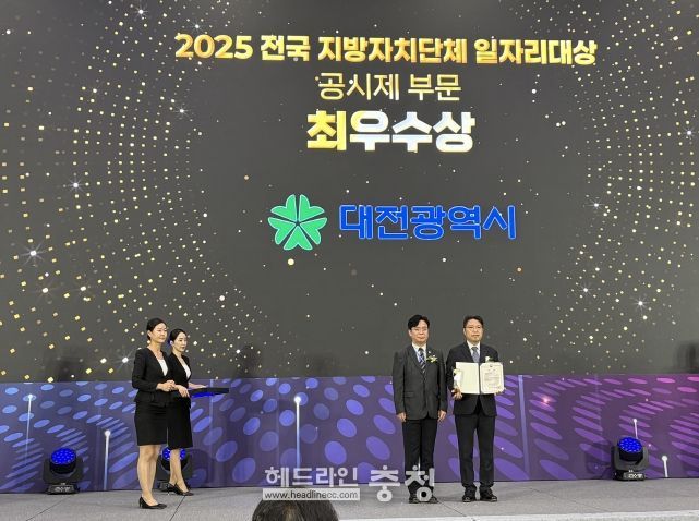 헤드라인충청 최병옥 기자 | 대전시는 30일 청주 오스코에서 열린 고용노동부 주관 ‘2025 전국 지방자치단체 일자리대상’ 시상식에서 ▲일자리 공시제 부문 최우수상 ▲우수사업 부문 우수상을 동시에 받으며 4년 연속 수상의 영예를 안았다.
