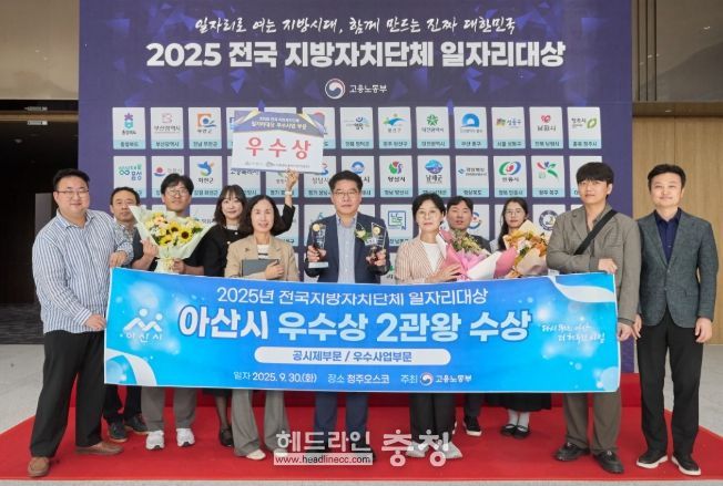 헤드라인충청 최주일 기자 | 충남 아산시가 고용노동부 주최 ‘2025 전국 지방자치단체 일자리 대상’에서 지역 일자리 목표 공시제와 우수사업 부문 모두 우수상을 거머쥐며 2관왕에 올랐다. 충남에서 두 부문을 동시에 수상한 지자체는 아산시가 유일하다.