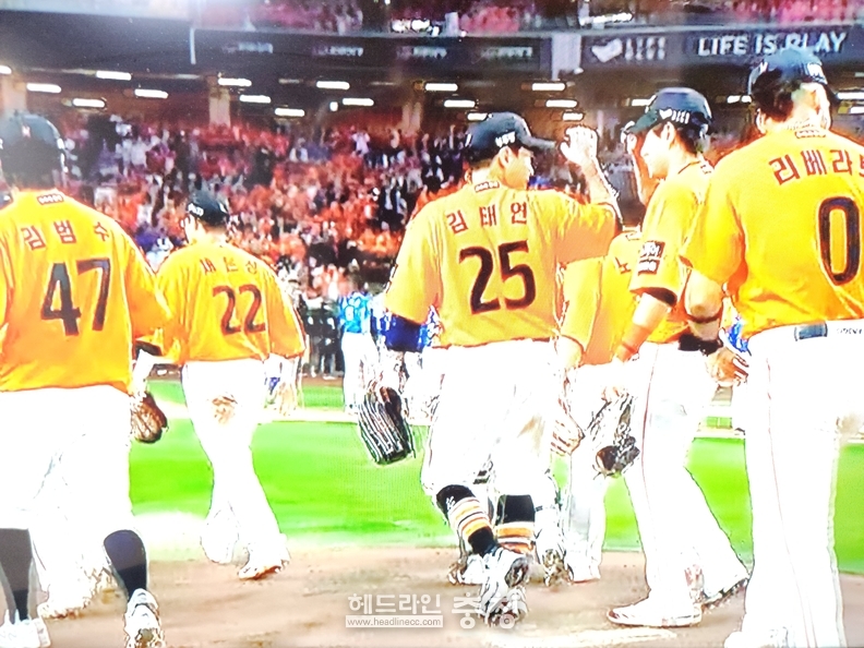이날 3타점 활약을 펼친 주장 채은성은 "타석에 부담 없이 들어섰는데 운 좋게 좋은 타점을 했다. 팬들의 주황색 응원이 큰 힘이 되었다."고 밝혔다.