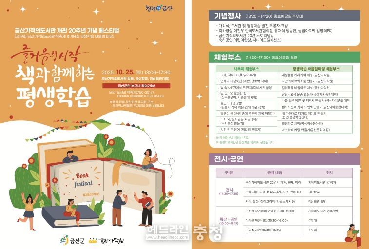 헤드라인충청 최주일 기자 | 금산기적의도서관은 올해 개관 20주년을 맞아 오는 25일 오후 1시 기적의도서관 앞 충효예광장에서 기념행사를 개최한다.