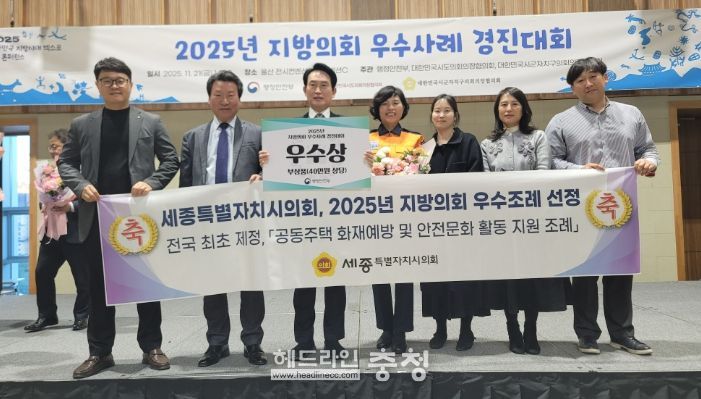 세종시의회가 전국 최초로 제정한'공동주택 화재예방 및 안전문화 활동 지원 조례'는 이날 대회에서 아파트 밀집 도시의 구조적 위험을 해소하기 위한 혁신 입법으로 평가받았다.