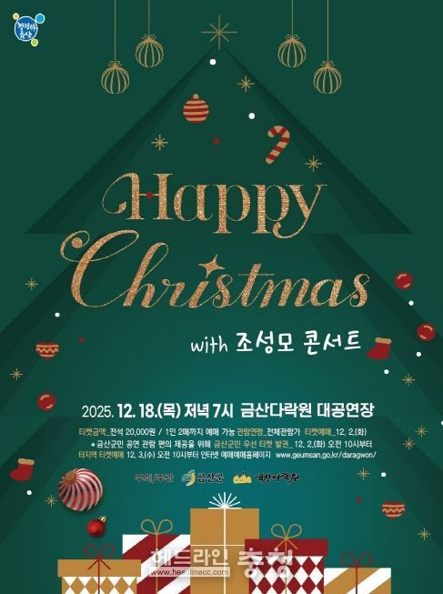 헤드라인충청 최주일 기자 | 금산다락원은 12월 18일 오후 7시 생명의 집 대공연장에서 연말 특별기획공연 해피 크리스마스 조성모 콘서트를 개최한다.