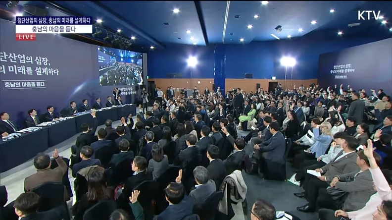 이재명 대통령이 충남 지역 현안의 뜨거운 감자인 '대전-충남 행정통합' 문제에 대해 현장에서 즉석 거수투표를 부치며 도민들의 가감 없는 민심을 확인했다.