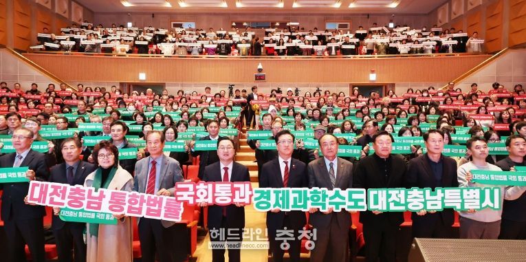 헤드라인충청 최병옥 기자 | 대전시는 12일 시청 대강당에서 대전광역시의회, 대전충남 행정통합 민관협의체(이하 민관협)와 공동으로 “대전충남 행정통합 설명회 및 시민 한마음 촉구대회”를 개최하고, 대전충남 행정통합 특별법안의 조속한 국회 심의․의결을 촉구했다.