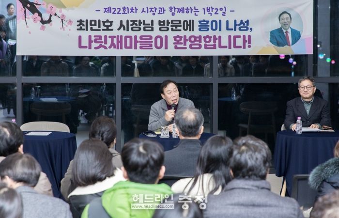 최민호 시장은 올해 첫 1박2일 장소로 나릿재마을2단지를 찾아 주민들과 지역 현안과 발전방안에 대한 진솔한 대화의 시간을 가졌다.