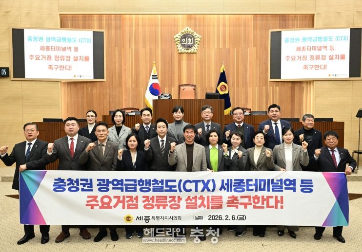 헤드라인충청 권은숙 기자 | 세종특별자치시의회는 6일, 제103회 임시회 제2차 본회의에서 국가균형발전의 상징이자 실질적인 행정수도로 도약하기 위한 ‘충청권 광역급행철도(CTX) 주요 거점 정류장 설치 촉구 결의안’을 채택했다.