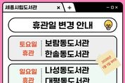 헤드라인충청 권은숙 기자 | 세종특별자치시 시립도서관이 시민 이용 편의 증진과 도서관 운영 효율화를 위해 관내 공공도서관 정기휴관일을 조정한다고 21일 밝혔다. 이번 조정은 지난 8월 행복누림터 내 5개 공공도서관을 대상으로 실시한 이용자 의견조사에 따라 이뤄졌다. 세종시 시립도서관은 조사 결과와 인접 도서관과의 중복된 휴관일 최소화 등 장기적인 운영 여건을 고려해 4개 도서관의 휴관일을 변경하기로 했다. 이에 따라 2026년 1월 1일부터 나성동도서관과 대평동도서관은 토요일에서 일요일로, 보람동도서관과 한솔동도서관은 일요일에서 토요일로 휴관일이 조정된다. 세종시립도서관 관계자는 “이번 휴관일 조정은 시민 의견을 반영해 도서관 이용 편의성을 높이기 위한 것”이라며 “시민 목소리를 지속적으로 수렴해 도서관 운영을 개선해 나가겠다”고 말했다.