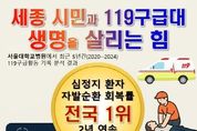 헤드라인충청 권은숙 기자 | 세종시가 최근 2년 동안 심정지 환자 생존 과정에서 전국 최고 수준의 회복률을 기록한 이유에 대해 이목이 쏠린다. 전문자격을 보유한 다수의 구급대원을 육성하고, 심폐소생술(CPR)에 대한 시민의 높은 관심이 그 배경이라는 게 세종소방본부의 설명이다. 앞서 세종소방본부은 ‘2024년 심정지환자 자발순환 회복률’ 부문에서 2년 연속 전국 1위를 차지했다. 자발순환 회복률(ROSC)은 심폐소생술을 실시하는 도중이나 이후 자발순환을 통해 심정지에서 회복된 환자의 비율을 나타내는 지표다. 세종시의 자발순환 회복률은 2023년 21.9%, 2024년 20.9%로 2년 동안 전국에서 가장 높았다. 세종시의 최근 5년 평균 자발순환 회복률 또한 17.7%로 전국 평균인 10.8%를 크게 웃돌았다. 세종소방본부는 전문성을 갖춘 구급대원과 활발한 시민 참여가 이같은 성과를 도출한 것으로 판단했다. 실제 세종시가 최근 서울대학교병원의 연구용역을 통해 발간한 ‘2020∼2024년 119구급 서비스 품질관리 보고서’에 따르면 관내 전문자격을 보유한 구급대원
