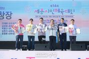 헤드라인충청 권은숙 기자 | 세종특별자치시가 27일과 28일 세종시민운동장에서 ‘함께 뛰고, 함께 웃는 세종! 체육으로 하나되는 시민체육대회’를 주제로 세종시민체육대회를 성황리에 개최했다. 14회째를 맞는 이번 체육대회는 24개 읍면동에서 총 1,000여 명의 시민들로 구성된 선수들이 출전해 화합과 교류의 시간을 가졌다. 대회는 배구와 배드민턴, 게이트볼, 수영 등 11개 정식종목과 궁도, 파크골프, 그라운드골프 등 3개 시범종목 경기로 구성됐다. 대회에 앞서 세종시와의 교류 10주년을 기념해 중국 산시성 청소년 대표단이 화려한 체조 공연을 펼쳤고 밸리댄스와 초청가수 공연 등 다양한 부대행사가 대회 분위기를 고조시켰다. 이어 제106회 전국체육대회에 출전하는 세종시 선수단의 결단식도 함께 진행돼 세종시의 명예를 걸고 최선의 경기력을 선보이겠다는 다짐을 나눴다. 대회 본경기에서는 각 종목에서 출전한 선수단들이 그간 쌓아온 실력을 뽐내고 화합을 다지는 시간을 가졌다. 최민호 시장은 “참여하신 모든 선수들이 올림픽에 참석한 것처럼 멋진 승부를 펼쳤다”며 “주민들이 선수로 나서 함
