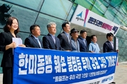 더불어민주당 소속 시민단체인 더민주세종혁신회의가 23일 세종시청 앞에서 한미동맹 불평등 투자 강요를 규탄하는 기자회견을 열었다. 더민주세종혁신회의와 더민주전국혁신회의 회원들은 미국이 한국에 요구하고 있는 3,500억 달러(한화 약 470조 원) 규모의 현금 투자는 "동맹국을 전범국처럼 취급하는 굴욕적 요구"라고 강력히 비판했다. 이들은 이번 요구가 국민 1인당 약 1천만 원의 부담을 안기는 막대한 규모이며, 국가 경제와 외환 보유액을 심각하게 위협하는 "베르사유 조약식 배상 요구"와 같다고 지적했다. 참가자들은 동맹 자체를 부정하지는 않지만, 동맹은 공정과 상호 존중에 기반해야 한다고 강조했다. 그러면서 한국 정부를 향해 △국익과 국민을 최우선으로 하는 재협상 △협상 과정의 투명한 공개 △자본 유출 대비책 마련 △국회 동의 등 헌법적 절차 준수 △투자 결정권과 법적 권리 사수 등을 요구했다. 아울러 미국을 향해서도 "강압은 협력이 될 수 없고, 일방의 명령은 동맹이 될 수 없다"고 경고하며 불평등한 요구를 즉각 철회할 것을 촉구했다. 마지막으로 혁신회의는 "만약 미국이 전향적인 태도 변화를 보이지 않는다면 미국 여행 보이콧과 제품·주식 불매 등 범국민적 행동