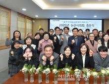 헤드라인충청 임용태 기자 | 논산시의회가 31일 오전 시의회 1층 회의실에서 종무식을 열고 2025년 한 해의 공식 일정을 마무리했다. 종무식은 조용훈 의장을 비롯한 의원들과 의회사무국 직원 등이 참석한 가운데 국민의례, 제9대 후반기 의정활동 홍보영상 시청, 각 유공 표창, 모범공무원증 수여, 퇴직자 공로패 수여, 송년사 순으로 진행됐다. 이날 종무식에서는 충청남도 및 지방의회 발전에 기여한 공로로 의회 사무국 유승규 주무관과 주기철 주무관이 충남지방의회발전 유공공무원 표창(충남시·군의회의장협의회장 훈격)을 받았으며, 양태영 주무관과 이지원 주무관이 직무를 성실히 수행한 공무원에게 주어지는 모범공무원증을 의장으로부터 수여 받았다. 조용훈 의장은 송년사에서 “올 한 해를 마무리하며 지역 발전과 시민 행복 증진을 위해 열심히 의정활동을 펼쳐주신 동료 의원님들과 어려운 환경속에서도 묵묵히 맡은 바 역할을 성실히 수행해주신 의회사무국 직원 여러분들께 깊이 감사의 말씀을 드린다”며, “2026년 병오년 새해에도 논산시의회는 ‘시민의 소리를 담아내는 생활정치 구현’을 위해 시민에게 더 가까이 다가가 최선의 의정