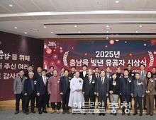 헤드라인충청 임용태 기자 | 올 한 해 각계에서 지역 발전을 위해 헌신하며 충남을 더욱 빛나게 한 도민과 공무원들이 한 자리에 모였다. 도는 29일 도청 대회의실에서 김태흠 지사와 수상자 등 100여 명이 참석한 가운데 2025년 충남을 빛낸 유공자 시상식을 개최했다. 이날 시상식에서는 9개 분야 29명의 민간인과 도 16개 부서가 도지사 표창 수상의 영예를 안았다. 자랑스러운 충남인상은 신규 국가산업단지 후보지 최종 선정을 지원한 정재택 종축장이전개발 범천안시민추진위원회 위원장과 지역 복지 향상에 기여한 조명자 나눔플러스 천안지역본부 실장 등 6명이 받았다. 충청남도 문화상은 충남 문학 위상 제고에 기여한 김일형 시인 등 3명이, 충청남도 환경 보전 대상은 도의 탄소중립 기본계획 수립 및 공모 사업 선정에 기여한 이은석 건축공간연구원 연구위원 등 3명이 수상했다. 지역 건설산업 및 건설 문화 질서 확립에 기여한 건설인에게 수여하는 충청남도 건설인상은 하승완 우호 대표이사와 이찬호 대형종합개발 대표이사 등 6명이 수상의 영예를 안았다. 지방세 납부를 통해 지역 발전에 기여한 기업인에게 수여하는 성실 납세 법인 분야 상은 세메스 주식회사 등 3개 기업, 반도체
