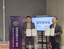 청주문화재단과 청주열린도서관이 책과 문화예술이 만난 융복합 공조에 들어간다. 청주시문화산업진흥재단(대표이사 변광섭, 이하 문화재단)은 25일(화) 오전 10시 문화제조창 본관 4층 청주시한국공예관 관장실에서 청주열린도서관(관장 심완보, 이하 열린도서관)과 지역 독서문화 및 문화예술 활성화를 위한 업무협약을 체결했다. 이날 협약에 따라 앞으로 두 기관은 시민을 위한 문화행사 공동 개발 및 운영, 물적·공간적 자원의 상호 교류 및 지원 등 책과 문화예술이 만난 융복합 공조로 지역사회 문화발전에 함께하게 됐다. 열린도서관 심완보 관장은 “두 기관이 함께 위치한 문화제조창을 주 거점으로 시민들이 문화예술과 독서를 보다 가깝고 편하게 즐기고, 다양성과 전문성을 강화해 삶의 만족도가 높아질 수 있도록 함께 노력하자”라고 전했다. 이에 청주문화재단 변광섭 대표는 “책으로 기쁨과 희망을 전하는 열린도서관과 문화로 더 큰 청주를 위해 노력하는 청주문화재단이 서로의 장점을 극대화하고 자원을 공유하며 청주만의 독특한 문화정체성을 만들고, 동시에 88만 청주시민은 물론 국내외 방문객들에게 더욱 사랑받는 문화제조창이 되도록 힘쓰자”라고 화답했다.