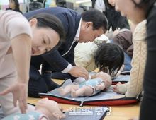 헤드라인충청 권은숙 기자 | 최민호 세종특별자치시장이 21일 종촌동 육아종합지원센터에서 ‘찾아가는 현장소통’을 열고 영유아 학부모 40여 명과 함께 심폐소생술을 재숙지하고 응급대처의 중요성을 공유했다. 이날 심폐소생술 교육은 세종시육아종합지원센터 육아 지원에 따라 대한인명구조협회 김지태 회장의 재능기부로 진행됐다. 교육은 실질적인 응급상황 대처 요령을 익히기 위해 4개 조로 나눠 이뤄졌다. 학부모들은 교육용 인형을 활용해 직접 심폐소생술을 체험하며 실제 상황에서 침착하게 대응하는 법을 익혔다. 최민호 시장도 교육을 함께 받으며 시민과 아이의 생명을 살릴 수 있는 심폐소생술을 재숙지했다. 이어 학부모들과 아이 돌봄과 안전교육에 대한 의견을 나누며 진솔한 소통을 이어갔다. 학부모들은 심폐소생술을 비롯한 안전 관련 실습 교육과 시간제 보육, 응급상황 대처 기반 시설 확충 등의 의견을 개진했다. 시는 이날 나온 참석자들의 의견을 검토·반영하는 등 안전한 육아환경 조성을 위해 적극 노력한다는 계획이다. 최민호 시장은 “아이를 키우는 일은 무엇보다 보람된 일”