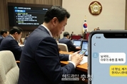문진석 더불어민주당 충남도당위원장이 국회 본회의 도중 김남국 대통령실 디지털소통비서관에게 특정 인사의 협회장 선임을 부탁하는 장면이 포착돼 파문이 일고 있다. 특히 이 과정에서 김 비서관이 대통령실 핵심 관계자들을 형, 누나로 지칭하며 추천을 약속해 논란이 가중되고 있다. 뉴스핌 보도와 국회 사진기자단 취재 등에 따르면, 문 의원은 지난 2일 728조 원 규모의 내년도 예산안 처리를 위한 국회 본회의장에서 김 비서관에게 텔레그램 메시지를 보냈다. 문 의원은 한국자동차산업협회(KAMA) 회장직에 협회 본부장 출신인 홍성범 씨를 추천하며 "자격은 되는 것 같은데 아우가 추천 좀 해줘"라고 청탁했다. 공개된 대화 내용에서 문 의원은 홍 씨에 대해 "우리 중(앙)대 후배고 대통령 도지사 출마 때 대변인도 했다"고 소개했다. 이어 "내가 추천하면 강훈식 실장이 반대할 거니까 아우(김 비서관)가 추천 해줘봐"라고 덧붙였다. 이는 공식적인 인사 추천 라인을 거치지 않고 사적인 인연을 통해 우회적으로 인사에 개입하려 한 정황으로 해석된다. 이에 김 비서관은 "네 형님, 제가 훈식이형이랑 현지누나한테 추천할게요! 홍성범 본부장님!"이라고 답장했다. 김 비서관이 언급한