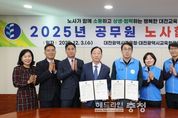 헤드라인충청 최병옥 기자 | 대전시교육청은 12월 3일 본관 6층 중회의실에서 대전시교육청공무원노동조합과‘2025년 지방공무원 노사협의회’를 개최했다고 밝혔다. 이번 노사협의회에서는, 고문노무사 제도를 신설·운영함으로써 노사문제에 대한 현장대응 체계를 강화하고 지방공무원의 안전 및 정신 건강 보호를 위한 지원 정책을 마련하여 업무에 전념할 수 있는 환경을 조성하기로 했다. 더불어 장애인 지방공무원 지원체계를 구축하는 등 교육행정의 안정적 운영을 위한 적정 인력 확보 노력과 업무 부담 완화 방안을 포함한 총 11개 사항에 노사가 합의했다. 대전시교육청 공무원노조 채정일 위원장은 “이번 노사협의회는 현장의 목소리를 직접 전달하고 직원들의 근무 환경을 개선할 수 있는 실질적 방안을 마련하는 뜻깊은 자리였다”며 “대전교육청과의 협의를 통해 공무원들이 보다 안정적인 환경에서 업무에 전념할 수 있도록 지속적으로 노력하겠다”라고 말했다. 설동호 교육감은 “교육 현장에서 어려운 여건 속에서도 묵묵히 근무하고 있는 공무원의 처우개선을 위하여 노력해준 노동조합에 감사드린다”며 “앞으로도 교육 현장의 의견을 경청하여
