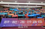 헤드라인충청 최주일 기자 | 아산시가 원주시·구미시·진주시와 손잡고 대도시 특례 기준 완화와 지방자치분권 강화를 위한 공동 대응에 나섰다. 오세현 아산시장은 22일 국회의원회관 제2소회의실에서 열린 ‘지방자치 균형성장 발전을 위한 원주·아산·구미·진주 공동포럼’에 참석했다. 이날 포럼에서는 4개 도시가 함께 대도시 특례 기준 완화와 관련한 공동건의문에 서명하고, 관련 법령 개정을 정부와 국회에 공식 건의했다. 이날 행사에는 아산·원주·구미·진주시 단체장을 비롯해 지역구 국회의원과 전문가들이 참석했다. 참석자들은 지방 중추도시가 스스로 성장의 기준을 세우고, 국가 균형발전의 주체로 기능해야 한다는 데 뜻을 모았다. 개별 도시 차원의 요구를 넘어, 유사한 제도적 한계를 겪고 있는 지방 중추도시들이 연대해 제도 개선을 촉구한 공식 행동이라는 점에서 의미를 더했다. 공동건의문에는 ▲인구 30만 명·면적 500㎢ 이상 지방자치단체에 대한 대도시 특례 기준 완화 ▲핵심 거점도시가 국가 균형발전의 축으로 자리매김할 수 있도록 하는 제도적 기반 마련 ▲분권과 자율을 통해 지방이 자립적으로 성장할 수 있는 실질적인 권한 이양과 미래 성장 동력 지원책 마련 등이 담겼다. 아산