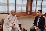 헤드라인충청 임용태 기자 | 김종민 의원(세종시갑, 산자중기위)은 새해를 맞아 조계종 총무원장 진우스님을 예방했다. 국회 정각회 회원이며 UN세계명상의날 한국위원회 자문위원인 김종민 의원은 행정수도 세종비전과 연계한 글로벌 선명상 대중화를 통한 세종시의 국제도시 위상 제고 방안을 제안했다. 김 의원은 15일 조계종 총무원장 진우스님을 만나, “지난해 UN세계명상의날 한국위원회 자문위원으로 행사에 참여하면서 느꼈던 행정수도 세종 비전과 연계한 선명상사업의 글로벌 대중화 방안도 말씀드리고 새해 인사도 드릴 겸해서 찾아뵀다”며 인사를 전했다. 총무원장 진우스님도 새해 인사를 건넨 뒤 “국회에서 토론하는 모습을 기억하고 있다”며 “논리적 말씀을 잘해서 인상깊었다”고 말했다. 이어 “새해에도 건승하길 바란다”고 덕담했다. 진우 스님은 김 의원의 제안에 대해“국민들의 마음평화, 마음안보의 중요성을 며칠 전에 대통령을 만나서도 말씀드렸다”며 글로벌 선명상사업이 대중화된다면 세종시뿐만 아니라 우리 국민들과 세계 시민들까지 모두에게 도움이 되겠다는 취지로 화답했다. 김종민 의원은 앞으로도 행정수도 세종