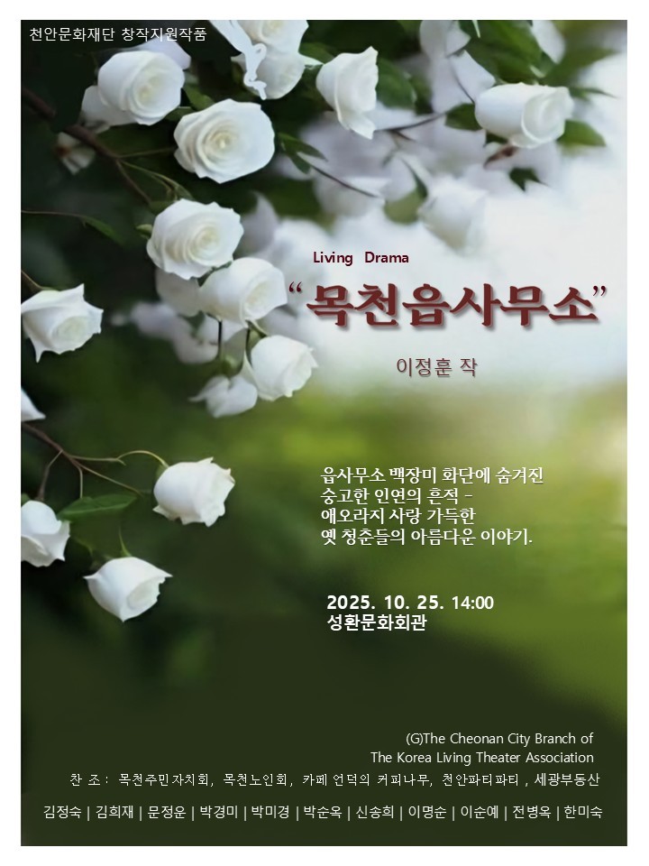 (사)한국생활연극협회 천안시지부에서는 오는 10월 25일(토) 오후2시 천안성환문화회관에서 작품 ‘목천읍사무소’를 연극무대로 올린다.