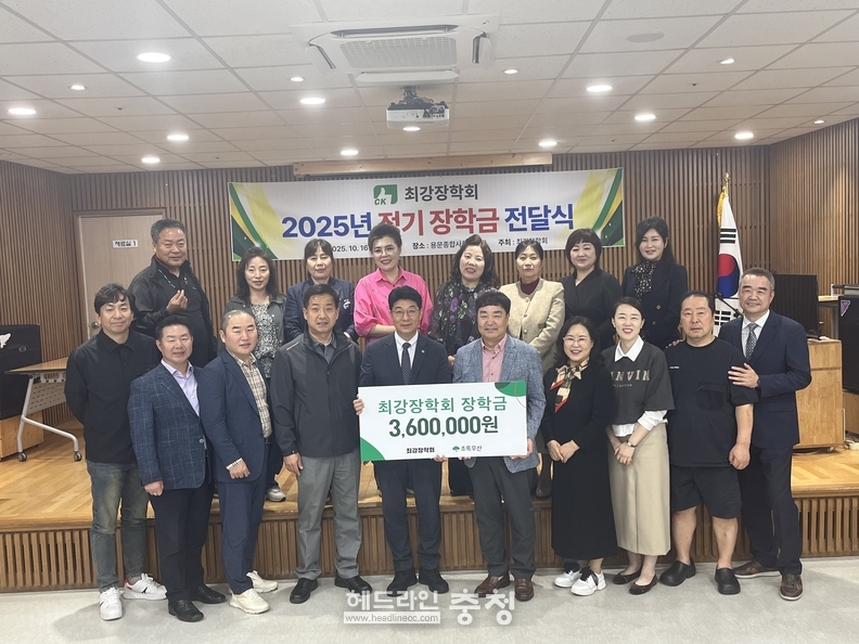최강장학회(회장 최병옥)는 초록우산 대전지역본부(최승인 충청권역총괄본부장)을 통하여 16일 용문종합사회복지관 대강당에서 최강장학회 회원 50여명과 장학생 50여명이 참석한 가운데 ‘2025년 최강장학회 정기장학금 전달식’을 갖고 후원금 360만원을 전했다.