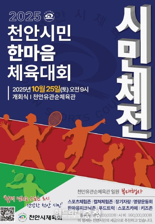 헤드라인충청 최주일 기자 | 천안시체육회는 오는 25일 천안종합운동장 일원에서 ‘2025 천안시민한마음체육대회’를 개최한다.