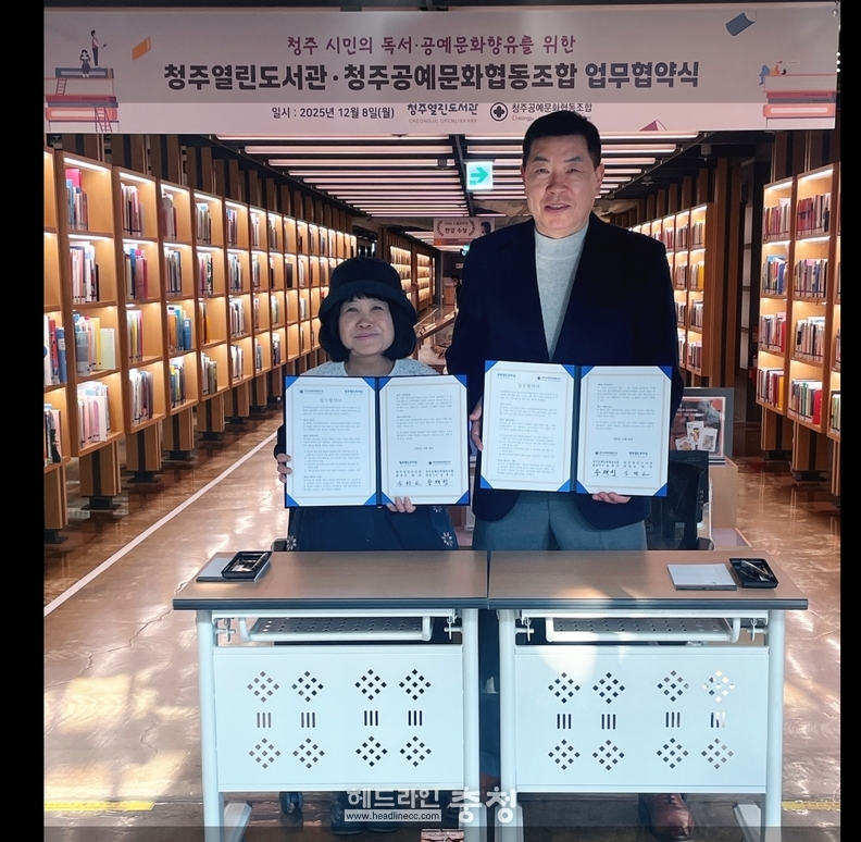 청주열린도서관과 청주공예문화협동조합은 8일 오전 11시 문화제조창 5층 청주열린도서관에서 지역 독서문화 및 공예문화예술 활성화를 위한 업무협약을 체결했다.