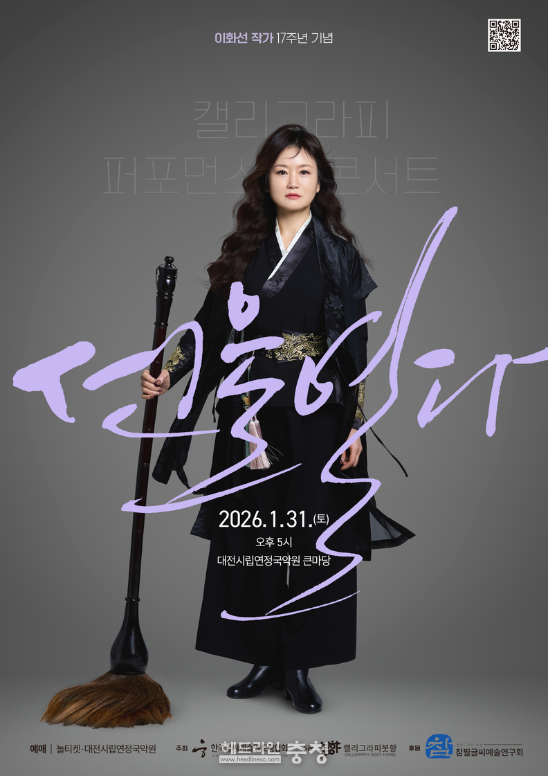 한국글씨예술멘토링협회(회장 이화선)는 오는 1월 31일 오후 5시 대전시립연정국악원 큰마당에서 이화선 캘리그라피 작가 등단 17주년을 기념하는 콘서트 ‘선을 열다’를 개최한다고 밝혔다.