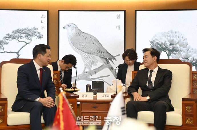 헤드라인충청 임용태 기자 | 김태흠 충남도지사는 6일 도청 접견실에서 다이빙(戴兵) 주한 중국대사와 만나 양 지역 간 교류·협력 확대 방안을 논의했다.