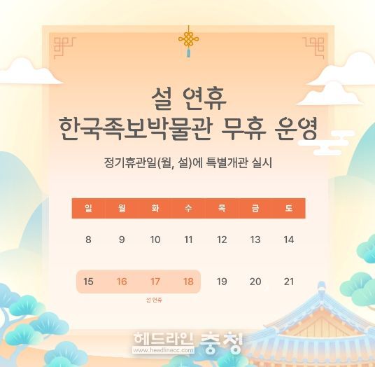 헤드라인충청 최병옥 기자 | 대전 중구 한국족보박물관에서는 2026년 설 연휴 기간인 오는 14일부터 18일까지 5일간 휴관 없이 정상 운영한다고 밝혔다.