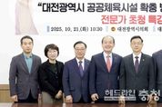 헤드라인충청 최병옥 기자 | 대전시의회 의원연구회인 ‘대전 체육 발전을 위한 연구회’는 21일 시의회 3층 공감실에서 '대전광역시 공공체육시설 확충 방안'을 주제로 전문가 초청 특강을 개최했다. 이번 특강은 대전연구원 정광진 박사를 초청해 대전시 공공체육시설의 현황과 공간 분포, 시설 불균형 문제, 향후 정책과제 등을 분석하고 시민의 체육활동 접근성을 높이기 위한 정책적 해법을 논의하기 위해 마련됐다. 민경배 회장(중구3, 국민의힘)은 “공공체육시설은 시민의 건강권과 삶의 질을 지탱하는 기반”이라며, “대전의 지역 간 체육 인프라 불균형을 해소하고 생활권 단위의 체육시설 확충이 시급하다”고 강조했다. 이어 “연구회는 앞으로도 현장의 목소리와 정책연구를 바탕으로 시민이 체감할 수 있는 체육정책을 적극적으로 제안해 나가겠다”고 밝혔다. 이번 특강에는 연구회장을 비롯해 연구회 소속 송활섭 의원(간사, 대덕구 2, 무소속), 박종선 의원(유성구 1, 무소속), 이병철 의원(서구 4, 국민의힘), 이재경 의원(서구 3, 국민의힘)이 참석했으며, 강연 후에는 공공체육시설 확충의 우선순위와 부지 확보 방안 등을 주제로 질의