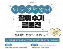 헤드라인충청 권은숙 기자 | 세종일자리경제진흥원이 운영하는 세종청년센터가 센터 사업 및 프로그램 참여자들의 경험과 이야기를 담기 위한 ‘2025년 세종청년센터 참여 수기 공모전’을 개최한다. 이번 공모전은 센터 사업 및 프로그램에 참여한 청년들의 다양한 사례를 수집하고, 현장에서 느낀 진솔한 경험담을 통해 청년들의 참여 의미를 더욱 널리 알리기 위해 마련됐다. 공모 분야는 총 3개 유형이다. ▲유형1은 세종청년센터 사업 및 프로그램 참여 청년, ▲유형2는 청년도전지원사업 참여 청년, ▲유형3은 청년성장프로젝트 참여 청년을 대상으로 하며, 1인당 1편만 응모할 수 있다. 참여 방식은 자유주제로, 2025년도 센터 사업 및 프로그램 참여 경험을 바탕으로 A4 1~4매(500자 이상)의 한글 파일 형식의 수기를 작성해 제출하면 된다. 공모 접수는 10일 16시까지이며, 세종청년센터 홈페이지에서 신청서를 내려받아 수기와 함께 제출하면 된다. 센터 사업에 참여한 세종시 청년이라면 누구나 지원할 수 있다. 참여자 모두에게는 세종청년마일리지 ‘세마일’* 20,000점이 적립되며, 부문별 ▲최우수 1