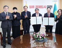헤드라인충청 최병옥 기자 | 대전시와 건양대학교는 9일 오전 시청 응접실에서 ‘신교통단(3칸 굴절차량) 시범사업 차고지 조성을 위한 부지사용 업무협약’을 체결했다. 이번 협약을 통해 건양대학교는 서구 관저동 건양대학교 병원 내 주차장 부지 일부를 신교통수단(3칸 굴절차량) 시범사업 차고지로 대전시에 무상 제공하기로 했다. 대전시는 해당 부지에 차고지를 조성하여 건양대학교와 병원을 이용하는 이용자들이 신교통수단을 통해 편리하게 이용할 수 있도록 노선을 운영하게 된다. 국내 최초로 대전시에 도입되는 신교통수단은 대규모 수송력(230여 명)을 갖춘 3칸 굴절차량으로 건양대병원~용소삼거리~도안동로~유성온천역 구간 총 6.5km 전용차로에서 2026년 3월 시범운영을 목표로 사업 추진 중이다. 전용차로 운행에 따른 정시성 확보가 가능하고, 실내 공간이 넓어 대중교통 이용이 불편했던 교통약자들도 편리하고 쾌적하게 이용할 수 있는 교통수단으로 평가받고 있다. 현재 해당 차량에 대한 관련법과 제도가 없어 규제 실증특례를 적용받아 추진하고 있지만, 작년 기획재정부 ‘정부 '기업․지역 투자활성화 방안'추