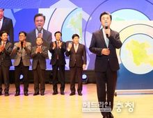 헤드라인충청 임용태 기자 | 대전충남 행정통합 특별법 제정을 위해 220만 도민이 한목소리를 냈다. 충남도는 9일 도청 문예회관에서 ‘대전충남 행정통합 범도민 촉구대회’를 개최했다. 이번 행사는 대전충남 행정통합에 대한 도민 공감대를 형성하고 특별법 제정을 촉구하는 자리로 마련했다. 김태흠 지사와 홍성현 도의장, 시장·군수, 민관협의체, 직능·사회단체, 도민 등 1800여 명이 참석한 가운데, 이번 행사는 영상 시청, 기조 발언, 결의문 낭독 및 구호 제창, 퍼포먼스 등의 순으로 진행했다. 이날 행사에선 정재근 대전충남 행정통합 민관협의체 공동위원장이 기조 발언을 통해 ‘대전충남 행정통합, 균형 발전과 국가 혁신의 시작’을 주제로 “대전충남 행정통합은 가장 실효적인 초광역 정부 모형”이라며 정부의 균형 성장 전략과 일치한다고 강조했다. 이어 바르게살기운동충청남도협의회, 충청남도정책특별보좌관, 충청남도자율방재단연합회, 충청남도자율방범연합회, 충청남도의용소방대연합회, 이통장협의회 충청남도지부 등 7개 단체가 220만 도민과 140만 대전시민의 염원을 담은 대전충남 행정통합 결의문을 낭독