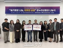 헤드라인충청 권은숙 기자 | 세종일자리경제진흥원은 9일 진흥원 본원 2층에서 세종특별자치시사회복지협의회, 초록우산 세종지역본부와 함께 ‘슬기로운 나눔, 따뜻한 상생’ 온누리상품권 나눔식을 가졌다. 이번 나눔은 현금이 아닌 전통시장·상점가에서 사용할 수 있는 온누리상품권을 전달함으로써 취약계층 지원과 지역 상권 활성화를 동시에 도모하기 위해 마련됐다. 전달된 상품권은 사회복지협의회와 초록우산을 통해 관내 저소득 아동 가구, 독거노인, 장애인 등 복지 사각지대 이웃들에게 배분될 예정이다. 이를 통해 수혜자들은 필요한 생필품을 전통시장과 골목상권에서 직접 구매할 수 있어 실질적인 생활비 절감이 가능하며, 지역 소상공인의 매출 증대에도 도움을 줄 것으로 기대된다. 김부유 회장은 “복지 사각지대에 놓인 이웃들에게 꼭 필요한 지원”이라며 “지역경제를 살리는 착한 소비로 이어질 수 있도록 잘 전달하겠다”고 말했다. 박미애 본부장은 “겨울철은 취약계층 아동 가정의 난방비·식비 부담이 커지는 시기”라며 “전해주신 상품권이 아이들의 따뜻한 겨울나기에 큰 힘이 될 것”이라고 전했다. 이홍준 원장은 “어려운