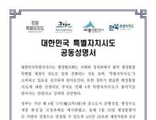 헤드라인충청 권은숙 기자 | 세종·제주·강원·전북 4개 특별자치시도가 광역 행정통합에 따른 역차별을 우려하며 행정수도특별법을 비롯한 4개 특별자치시도 관련 특별법의 조속한 제정을 거듭 촉구했다. 세종특별자치시와 제주특별자치도, 강원·전북특별자치도로 구성된 ‘대한민국특별자치시도 행정협의회’는 22일 이같은 내용을 담은 4개 시도지사 명의의 공동성명서를 발표했다. 이는 최근 광역 행정통합 특별법 제정과 정부의 통합 인센티브 발표 등 행정통합 논의가 속도감 있게 진행되는 데 비해 4개 특별자치시도 관련 법안 처리는 계속 지연되고 있다는 문제의식에 따라서다. 최근 정치권에서 광주‧전남과 대전‧충남 통합 특별법 제정을 매우 속도감 있게 진행되고 있으나 이보다 먼저 발의된 ‘행정수도특별법’과 ‘강원‧제주‧전북특별법’ 입법은 논의 조차 되지 않는 상황이다. 또한, 정부의 ‘5극3특 균형성장’이라는 국정과제 안에서 4개 특별자치시도에 대한 지원 방안이 전혀 없고, 통합특별시에 비해 상대적 박탈감과 지역 불균형이 더 벌어질 수 있다는 문제점이 제기되고 있다. 이에 협의회는 광역 행정통합이 정부의 과감한 지원 속에서 추진되는 데 비해 같은 ‘5극3특 균형성장’이라는 국정과제에