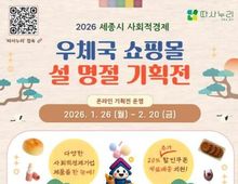 헤드라인충청 권은숙 기자 | 세종일자리경제진흥원이 설 명절을 맞아 세종시 사회적경제기업의 온라인 판로 확대와 매출 증대를 위해 ‘2026년 세종시 사회적경제 우체국쇼핑몰 온라인 설 기획전’을 운영한다고 밝혔다. 1월 26일부터 2월 20일까지 진행되는 이번 기획전은 명절 소비 수요가 집중되는 시기에 맞춰 마련됐다. 진흥원은 이를 통해 세종시 관내 사회적경제기업의 우수한 제품을 전국 소비자에게 소개하고, 기업들이 안정적인 온라인 판매 기반을 구축할 수 있도록 적극 지원할 방침이다. 행사에는 관내 7개 사회적경제기업이 참여해 육류 선물세트, 와인, 비누, 약과 등 설 선물용 인기 제품 17종을 선보인다. 특히 소비자 혜택을 극대화하기 위해 ▲전 제품 20% 할인 쿠폰 제공 ▲무료배송 서비스를 지원해 가격 경쟁력을 확보했다. 또한 진흥원은 자체 운영 중인 사회적경제 플랫폼 ‘따사누리’와 연계해 홍보 효과를 더했다. 따사누리 홈페이지 내 메인 배너를 클릭하면 우체국쇼핑몰 기획전 페이지로 바로 연결되어 소비자의 구매 편의를 돕는다. 이홍준 원장은 “이번 온라인 기획전이 참여 기업들에게 실질적인 매출 증대의