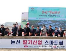 헤드라인충청 최주일 기자 | 대한민국 스마트농업을 선도 중인 충남도가 ‘딸기 메카’ 논산에 대규모 수출 전문 딸기 스마트팜 단지를 만든다. 도는 13일 논산시 부적면 마구평리 일원에서 전형식 정무부지사와 청년농업인 등 300여 명이 참석한 가운데 ‘논산 딸기산업 스마트팜 복합단지(이하 논산 딸기 복합단지)’ 착공식을 개최했다. 논산 딸기 복합단지는 2028년까지 145억 5500만 원을 투입, 14.1㏊(4만 3000평) 규모로 조성한다. 논산 딸기 복합단지는 논산시가 국유지 땅을 매입해 용배수, 전기, 도로, 오폐수 처리 등 기반 시설을 설치한 뒤 부지를 제공하고, 청년농 등이 보조·융자금과 자부담으로 온실을 설치한다. 1단계 충남형 스마트팜 복합단지 7.4㏊는 15개 구획으로 나눠 올 상반기 완공을 목표로 조성 추진 중이다. 도와 논산시는 15개 구획 가운데 12개 구획 12명의 입주 청년농 선발을 마쳤으며, 다음 달 중 나머지 3명을 선발할 계획이다. 각 구획당 면적은 3300∼4950㎡ 규모로, 청년농에게 안정적인 스마트팜 경영 기회와 함께 자립 기반을 제공한다. 2