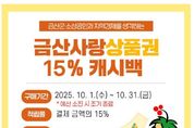 헤드라인충청 최주일 기자 | 금산군은 지역 상권에 활기를 불어넣기 위해 9월부터 적용한 금산사랑상품권 캐시백 적립률 15%를 10월에도 유지한다. 상품권 15% 캐시백 유지는 주민 호응과 정부의 지역사랑상품권 정책 기조를 반영해 추진하며 민족 최대 명절인 추석을 맞아 명절 선물 구입 및 제수용품을 해야 하는 주민들의 부담을 줄일 것으로 예상된다. 금산사랑상품권은 스마트폰 앱 지역상품권 착(chak)을 통해 상품권을 구매한 뒤 가맹점에서 결제하면 되며 지역 음식점·병원·학원·미용실 등 약 2900개 가맹점에서 사용할 수 있다. 캐시백 적립은 종이 상품권은 적용되지 않고 모바일·카드 상품권에서만 이뤄진다. 군 관계자는 “금산사랑상품권 캐시백 적립은 소비만 해도 혜택을 받을 수 있다”며 “지역 경제 활성화에도 도움이 되는 상품권을 많이 이용해 주시길 바란다”고 말했다.