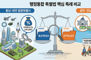 수도권 일극 체제를 타파하고 지방 소멸을 막기 위한 '충청권'과 '호남권'의 행정통합 논의가 급물살을 타는 가운데, 국회에 제출된 양 지역의 통합 특별법안에서 미묘하지만 결정적인 차이가 발견돼 지역 정가의 이목이 쏠리고 있다. 더불어민주당 한병도 의원이 지난 3일 대표 발의한 「전남광주통합특별시 설치를 위한 특별법안(의안번호 16517)」과 「충남대전통합특별시 설치 및 경제과학국방중심도시 조성을 위한 특별법안(의안번호 16520)」을 본지가 입수해 정밀 분석한 결과, 두 법안 모두 파격적인 권한 이양을 담고 있으나 '특례의 강도' 면에서 광주·전남 법안이 특정 분야에서 더 유리한 고지를 점한 것으로 나타났다. 두 법안은 기본적으로 통합특별시를 설치해 정부 직할로 두고, 서울특별시에 준하는 법적 위상을 부여한다는 점에서 궤를 같이한다. 핵심 재정 특례인 '보통교부세 산정 시 기준재정수요액과 수입액 차액의 25%를 10년간 추가 지원(광주전남 제44조, 충남대전 제55조)'하는 조항도 동일하게 포함됐다. 국무총리 소속 지원위원회 설치와 부시장(4명) 정수 확대 등 행정 조직 특례도 대동소이하다. 가장 눈에 띄는 차이점은 광주·전남 법안에만 존재하는 '지정면세점'