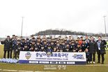 헤드라인충청 임용태 기자 | 김태흠 충남도지사는 2일 이순신아산종합운동장에서 열린 ‘하나은행 K리그2 2026’ 파주 프런티어FC와의 충남아산FC 홈 개막전을 찾아 1부 리그 승격을 기원하고 선수단을 격려했다. 충남아산FC 명예구단주인 김 지사는 이날 시축을 통해 1부 리그 승격을 위한 승리를 기원하고, 관중들과 함께 경기를 관람하며 뜨거운 응원을 보냈다. 이 자리에서 김 지사는 “충남아산FC는 2024년 준우승한 명문구단으로서 강한 저력을 가진 팀”이라면서 “올해는 최대 4개 팀이 K리그로 올라갈 수 있는 만큼 이번 기회에 1부 리그로 진출해야 한다”라고 강조했다. 이어 김 지사는 “도 차원에서도 지난해보다 훨씬 강화된 지원으로 1부 리그 승격을 끝까지 밀어붙일 것”이라며 “도민 여러분께서도 충남아산FC를 힘차게 응원해 주시길 바란다”라고 말했다.