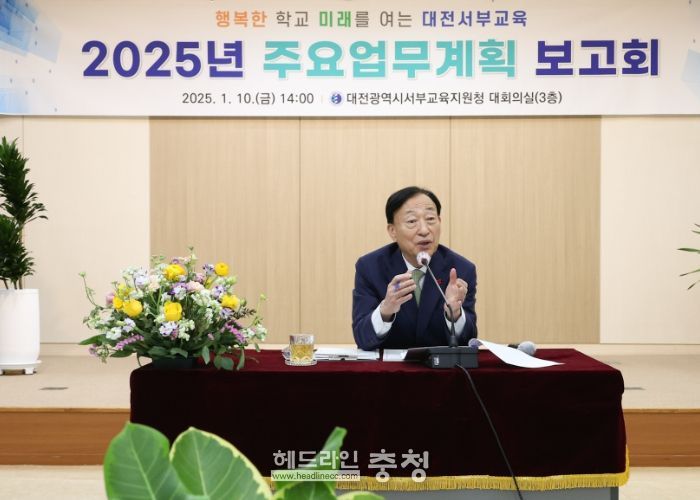 헤드라인충청 최병옥 기자 | 대전서부교육지원청은 1월 10일 대회의실에서 대전서부교육 비전 공유를 위한 '2025년 주요업무계획 보고회'를 개최했다고 밝혔다. 이 자리에는 설동호 대전광역시교육감, 공․사립 유치원장, 초․중학교 교장, 서부 관내 학교운영위원장 등 80여명이 참석했다.