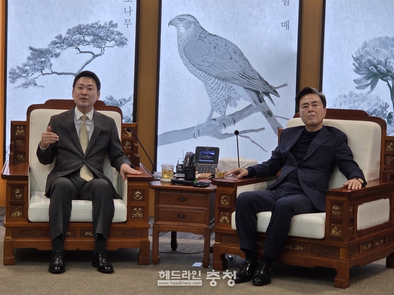 장동혁 국민의힘 대표가 10일 오후 예고 없이 충남도청을 전격 방문해 김태흠 충남도지사와 대전·충남 행정통합 등 지역 핵심 현안을 논의했다. 이 자리에서 두 사람은 지역의 굵직한 화두인 행정통합 추진과 관련해 '알맹이 없는 졸속 추진'에 대한 강한 경계심을 드러냈다.