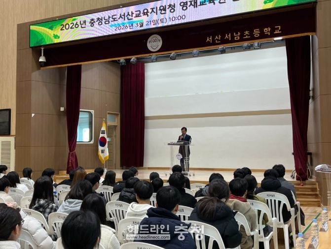 헤드라인충청 최주일 기자 | 충청남도서산교육지원청은 3월 21일 서산서남초등학교 체육관에서 2026학년도 제24기 서산교육지원청영재교육원 입학식을 개최했다. 이날 입학식에서는 서산인재육성재단이 장학금 2천만 원을 기탁하며 지역 인재 양성에 힘을 보탰다.