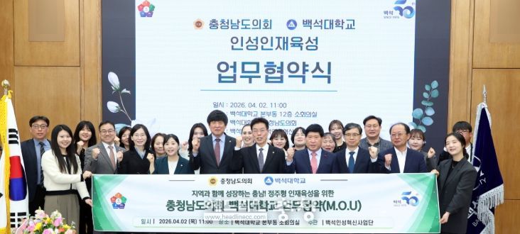 헤드라인충청 임용태 기자 | 충남도의회가 백석대학교와 손을 잡고 지역사회 미래를 책임질 ‘인성 인재’ 양성을 위한 제도적 기반 마련에 나선다.