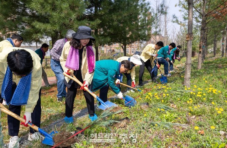 이번 행사는 교육청 구성원들이 직접 삽을 들고 청사 환경을 정비하면서 기관에 대한 애착을 높이고, 탄소중립 실천 의지를 다지는 취지로 진행됐다.