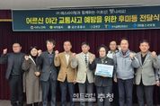 헤드라인충청 최주일 기자 | 금산경찰서는 2026년 2월 20일 오전 10시 경찰서 2층 소담마루에서 노인 교통사고 예방을 위한 안전 후미등 전달식을 개최했다. 이날 행사에는 대한노인회 금산지회, 새마을연합회, 금산군청, 한국교통안전공단, ㈜에스라이팅 대표 등이 참석해 지역 어르신 교통안전 강화를 위한 민·관 협력 방안을 공유했다. 이번 전달식은 야간 운행 중 사고 위험이 높은 실버카(노인 전동차)의 안전 확보와 경운기 사고를 예방하기 위한 목적으로 마련됐으며, ㈜에스라이팅(대표 박병인)은 약 600만원 상당의 후미등 40개를 기탁했다. 해당 후미등은 실버카 등 보행보조기구에 부착이 가능해, 야간이나 시인성이 낮은 환경에도 실버카, 경운기를 운전자에게 명확히 인식 시키는데 효과가 있을 것으로 기대된다. 금산경찰서장은 “실버카와 경운기 교통사고는 야간시간대에 집중되는 경향이 있다.”며 “이번 민·관 협력 기탁은 어르신들의 실질적인 교통 안전 확보에 큰 도움이 될 것”이라고 밝혔다. 또한 “금산경찰서는 앞으로도 지자체, 관계기관과 협력해 교통약자 보호를 위한 맞춤형 교통안전 활동을 지속적으